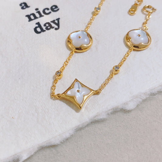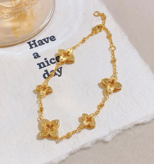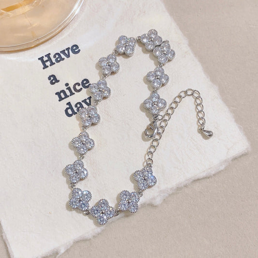 Zircon Inlaid Lucky Four-Leaf Bracelet | Sparkling & Symbolic
