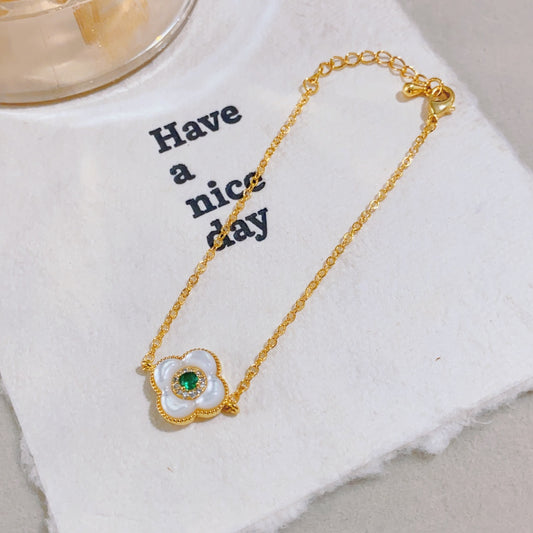 Light Luxury Zircon Inlaid Lucky Four-Leaf Bracelet | Copper & Elegant