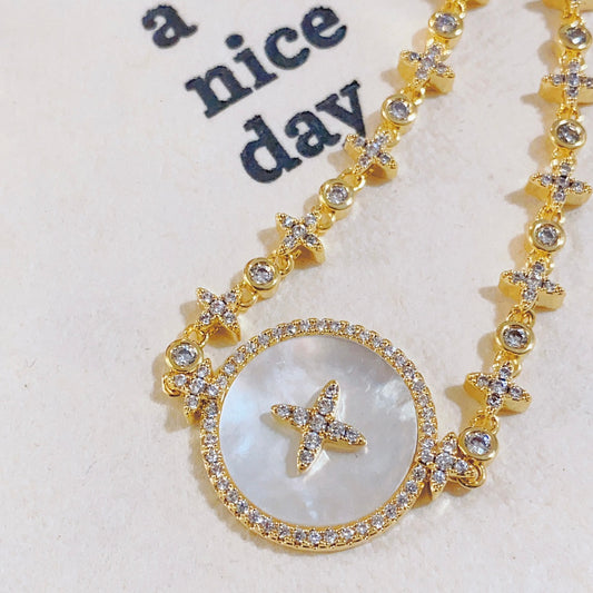 White Shell Bracelet with Zircon Inlay | Elegant & Timeless